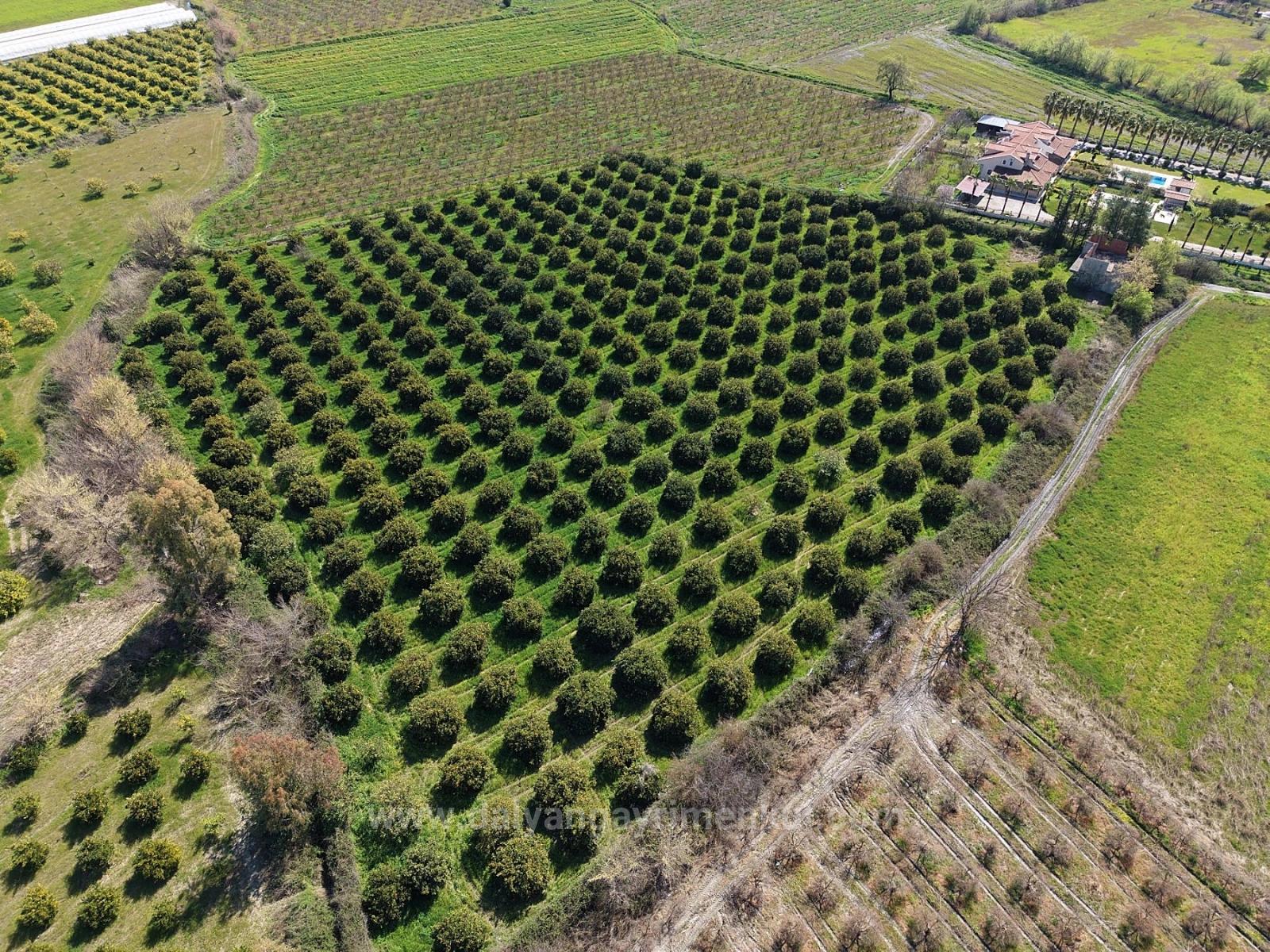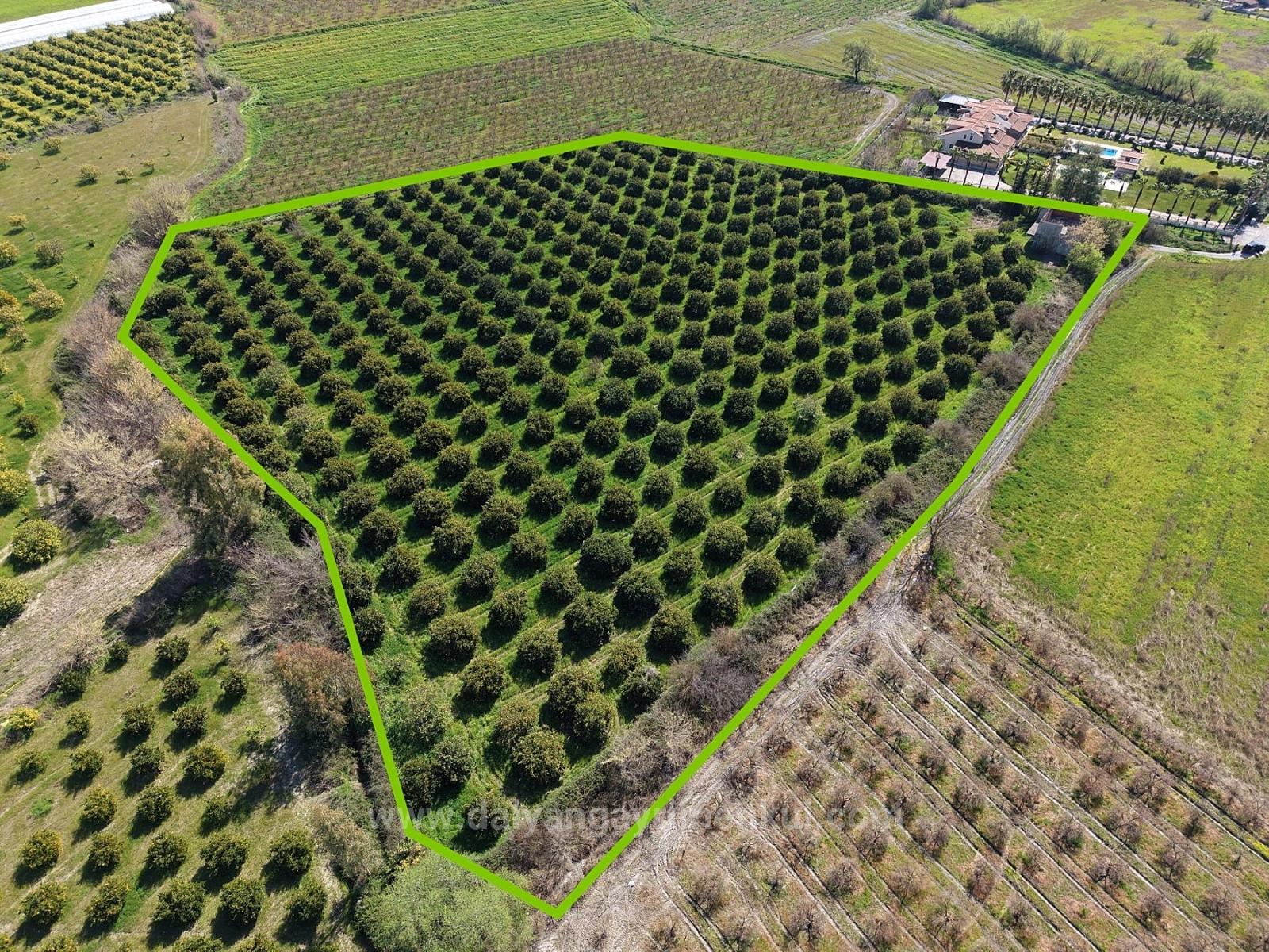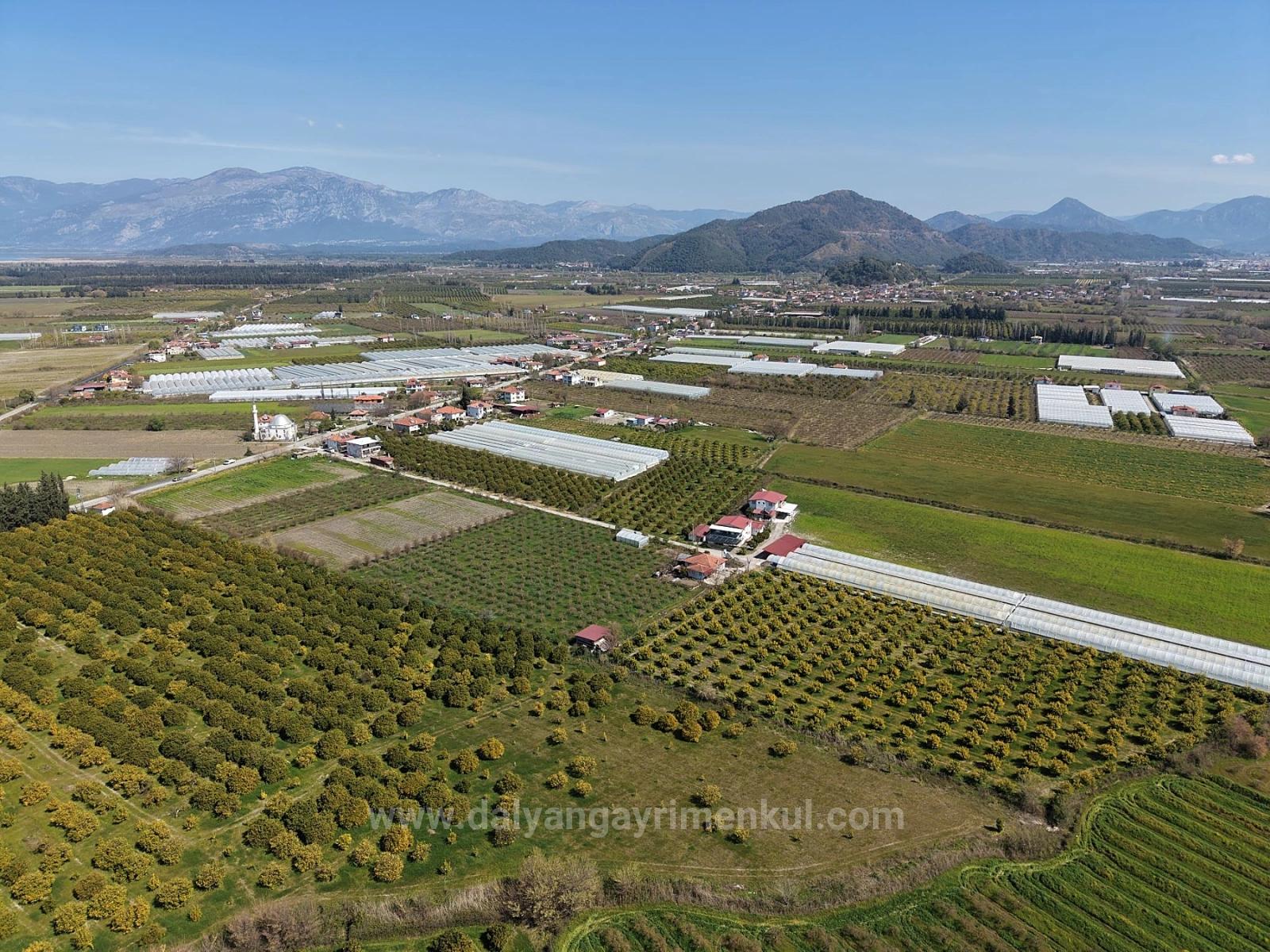 17.550m2 citrus garden close to Dalyan center is for sale. There is a building with building registration certificate of approximately 200m2. There are no road, water, electricity or telephone problems. Annual fruit yield is close to 60-70 tons. There are constructions around it. It can be arranged with a building renovation permit. The price of the garden, which is 2 km from Dalyan center, 12 km from Iztuzu Beach and 25 km from the airport: 1,650,000 Dollars
