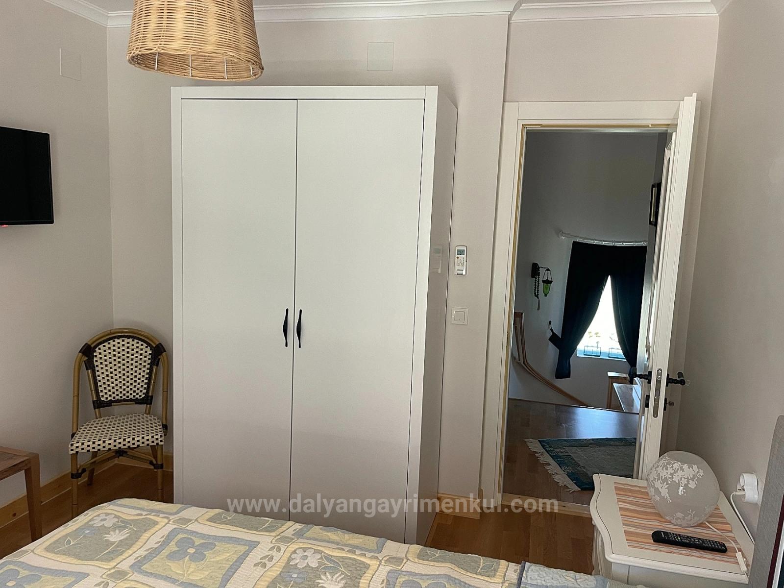 In Dalyan Gülpınar, on a 720m2 land, it has 4 bedrooms, 1 living room, open kitchen, 4 bathrooms, one of the bedrooms is on the ground floor. There is also an outbuilding in the garden. It is 1+1, has 1 bathroom and has a closed parking lot. The villa has an outdoor swimming pool and a salt water system. There is a relaxation area by the pool. The villa has no cost. It has been newly renovated. Everything has been renewed. It is within walking distance of the market. There are local and foreign investors around it. It is within walking distance of shopping markets and cent market. The price of the villa, which has nature and forest views, is 10 km from Iztuzu beach and 26 km from the airport, is 765,000 EURO
