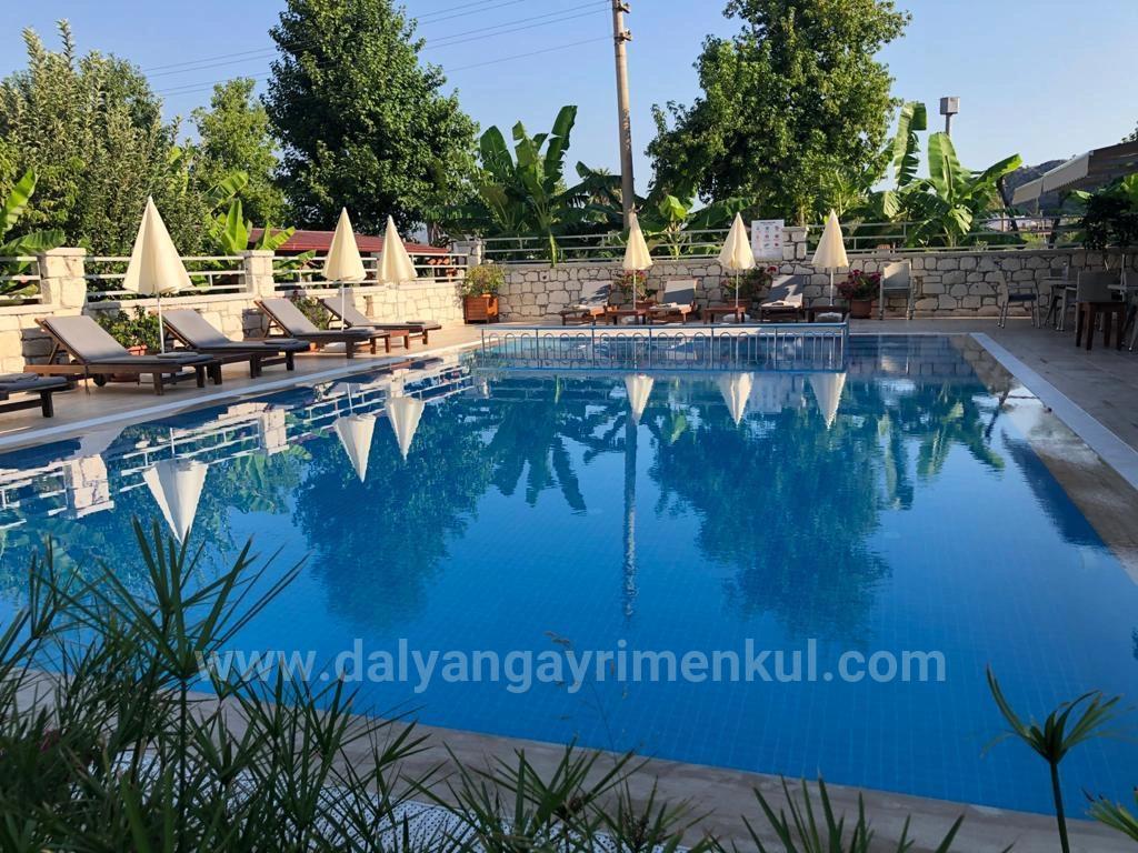 Продается бутик-отель в Дальян Гюльпынар, в нескольких минутах ходьбы от канала, на участке площадью 1400 м2 с тремя сторонами дороги. Бутик-отель построен в современном здании и располагает 17 номерами. В отеле есть открытый ресторан площадью 150 м2 и крытый ресторан площадью 150 м2. Имеется пол с подогревом и центральное отопление. Бассейн представляет собой соляную систему, а у бассейна есть терраса для принятия солнечных ванн. Сад гармонично вписан в архитектуру отеля, ландшафтный дизайн которого дополнен пышными зелеными деревьями и цветами. Имеет туристический сертификат. На кухне имеется холодильная камера. Для объекта имеется специальный генератор. Цена: 2 000 000 евро
