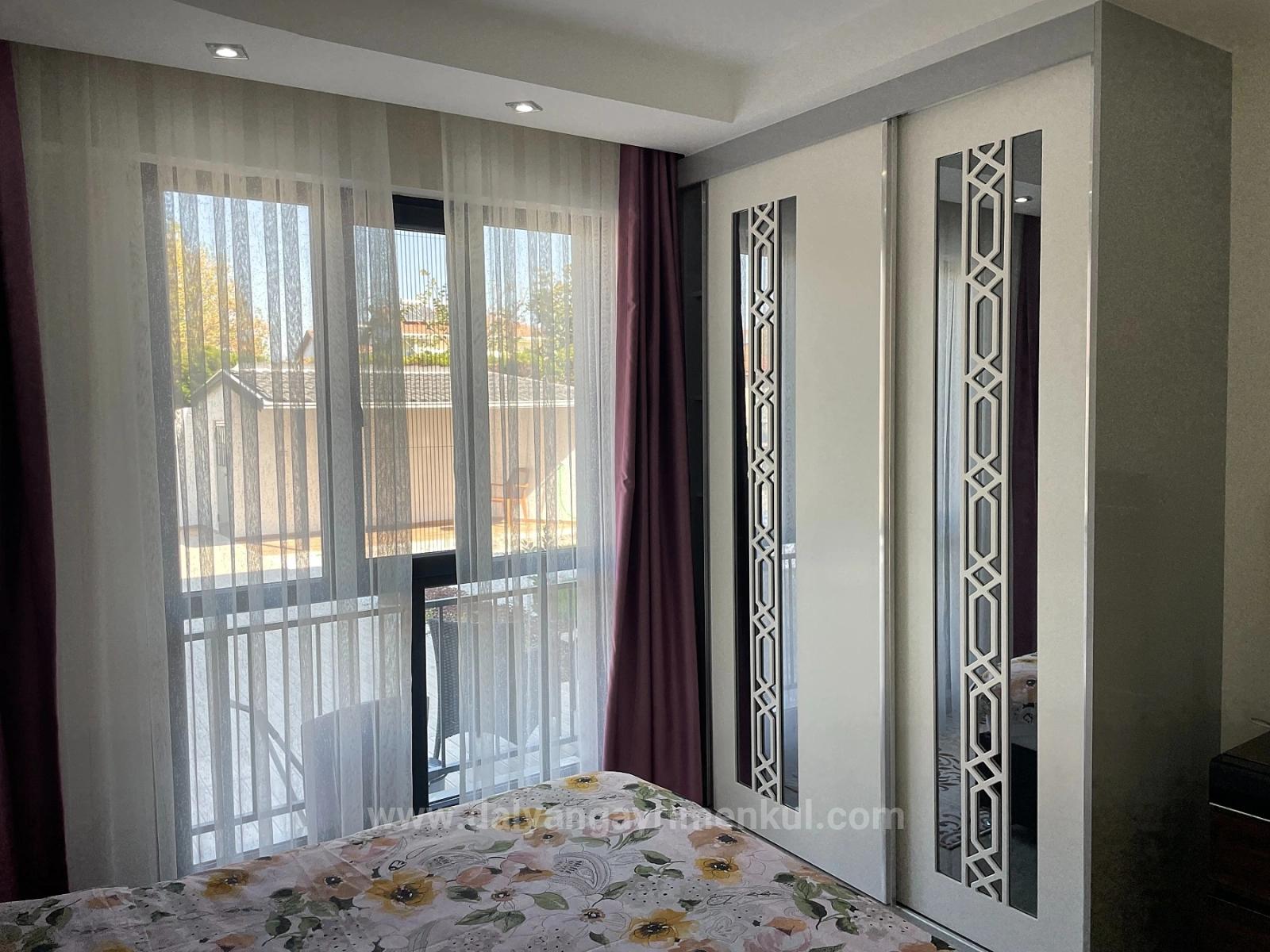 Продается квартира на первом этаже в 8-квартирном доме на участке площадью 1000 м2 в центре Дальяна. Квартира состоит из 2 спален, 1 гостиной с открытой кухней и 1 ванной комнаты, общей полезной площадью 75 м2. Полностью меблирована. Дом новый и не требует ремонта. Имеется общий открытый бассейн. В шаговой доступности торговые центры. Квартира расположена в 10 км от пляжа Истузу и в 25 км от аэропорта. Цена: 210 000 евро.