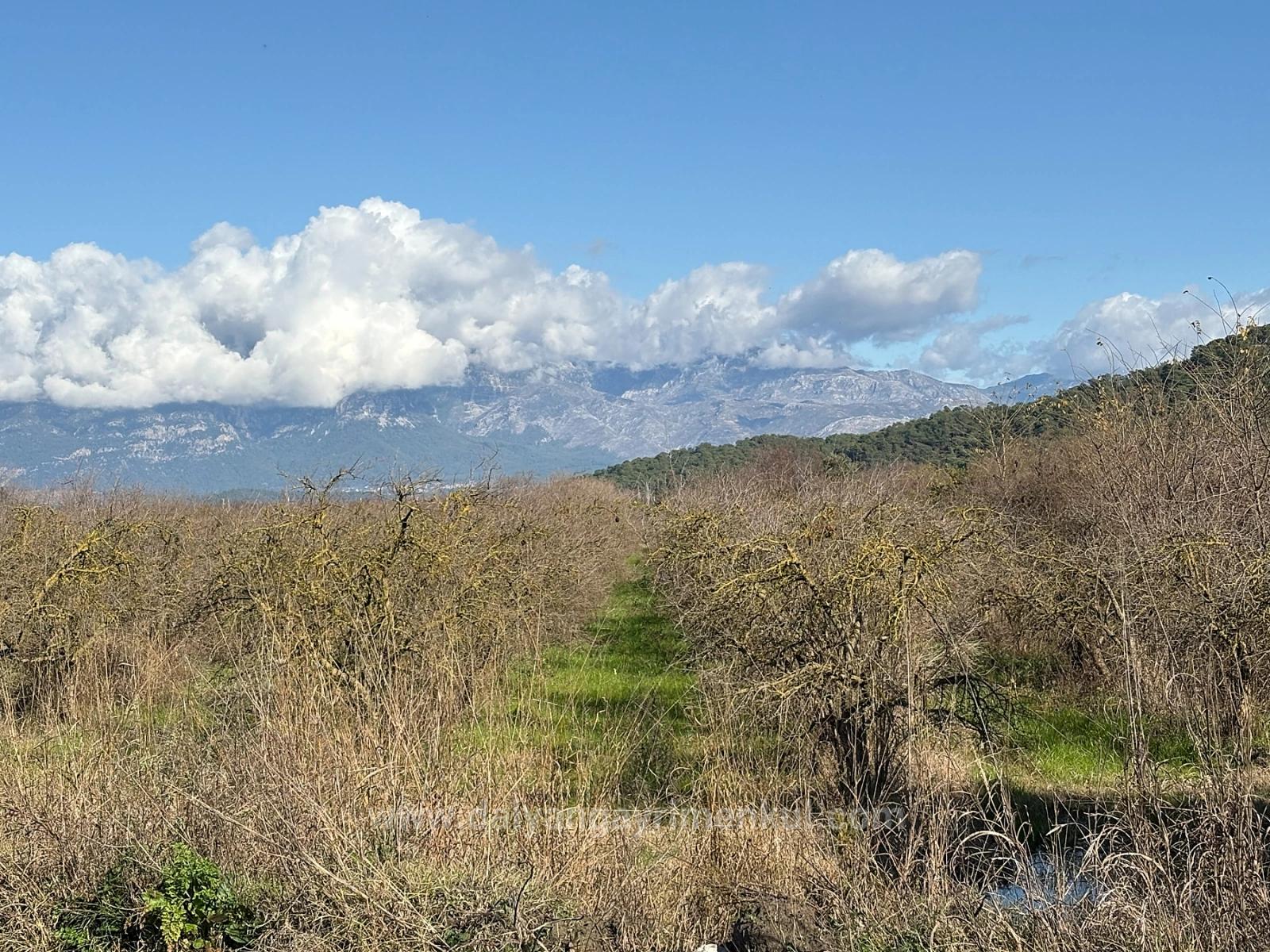 В районе Ортаджа Тепеарасы, прямо рядом с асфальтированной дорогой, продается земельный участок площадью 23 000 м2, подходящий для виноградников и фруктовых садов. Проблем с подъездными путями, водоснабжением, электричеством и телефонной связью нет. Сад имеет собственную частную подписку на электроэнергию. На участке растут гранатовые и лимонные деревья, а также несколько апельсиновых и мандариновых деревьев. Участок расположен в 5 км от Дальяна, в 15 км от пляжа Истузу, в 10 км от Ортаджи и в 25 км от аэропорта. С участка открывается вид на природу и лес. Цена: 45 000 000 турецких лир.