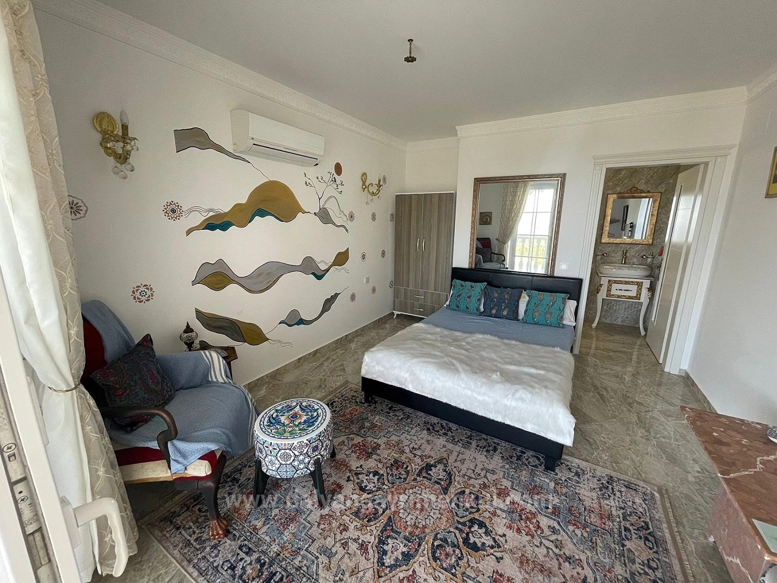 Продается VIP-вилла с полным видом на море на участке площадью 5000 м2 в Гёкбеле. Вилла имеет 7 спален, каждая с собственной ванной комнатой. Одна спальня представляет собой двухуровневую виллу с собственной ванной комнатой. В ней есть просторная гостиная и кухня открытой планировки. Каждая комната полностью меблирована и оборудована кондиционерами. На территории есть открытый бассейн, имитирующий естественный вид. В отделке виллы использован мрамор. Ландшафтный дизайн и оформление сада завершены. Здание имеет свидетельство о регистрации. Также имеется регистрация старого здания за пределами виллы. Электричество и вода доступны. Владелец – иностранец. Годовой доход от аренды составляет приблизительно 30-35 тысяч фунтов стерлингов. Имеется резервуар для воды объемом 2-3 тонны. Расходы отсутствуют. Из виллы открывается вид на море, природу и лес. Вилла расположена в 5 км от пляжа Истузу, в 15 км от пляжа Саригерме, в 10 км от центра Дальяна и в 20 км от аэропорта. Ее цена составляет 1 650 000 фунтов стерлингов.