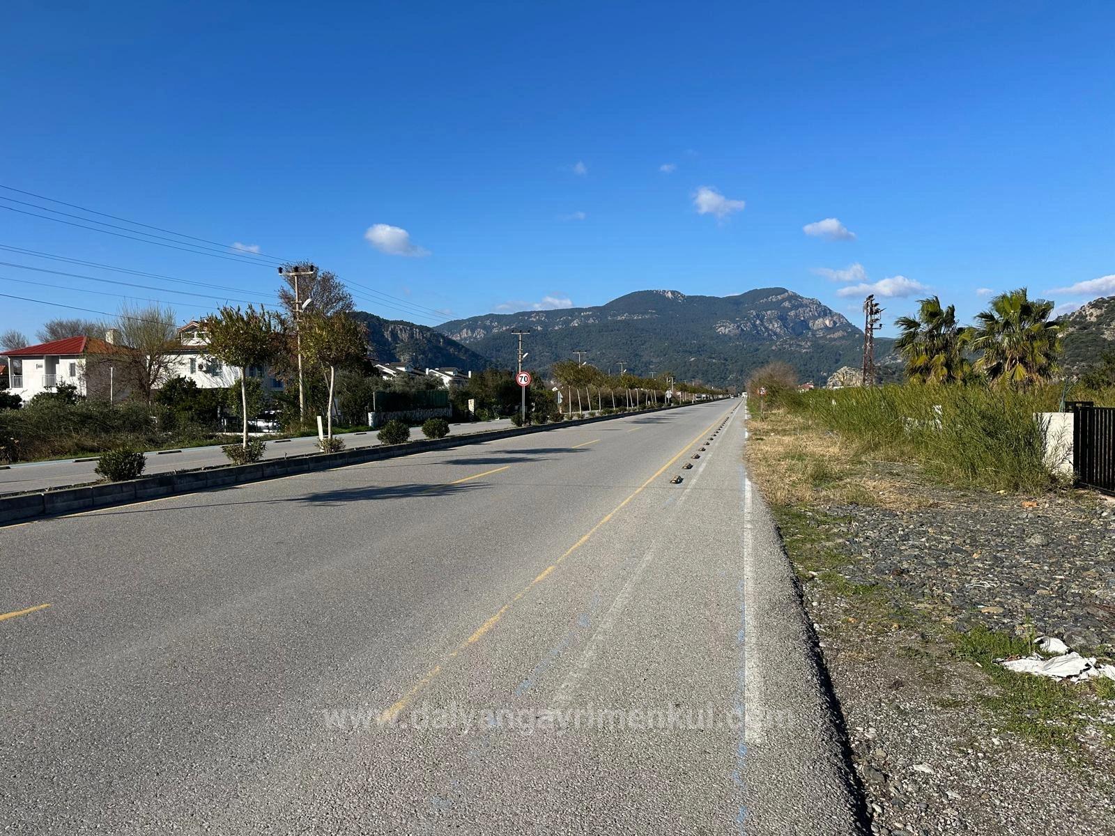 Dalyan'da anayol üzerinde 5.111 m2 köşebaşı olan arsa satılıktır. Yol cephesi 85 metredir. Yol, su, elektrik, telefon sorunu yoktur. Bölgede geçici olarak imar planı revizyon çalışması vardır. Bir önceki iptal edilen imar planında burası %20 ticari imar alanında kalmaktaydı. Plan çalışmaları devam etmekte olan arsa ileriye dönük yatırım için uygundur. Etrafında mevcut ticari işletmeler vardır. Plan güncel duruma gelince çok amaçlı işyeri, konut vb. yapılabilir. Dalyan merkeze 1.5 km, Dalaman havaalanına 25 km, İztuzu Plajı'na 10 km mesafesi olan arsanın fiyatı:1.250.000 EURO