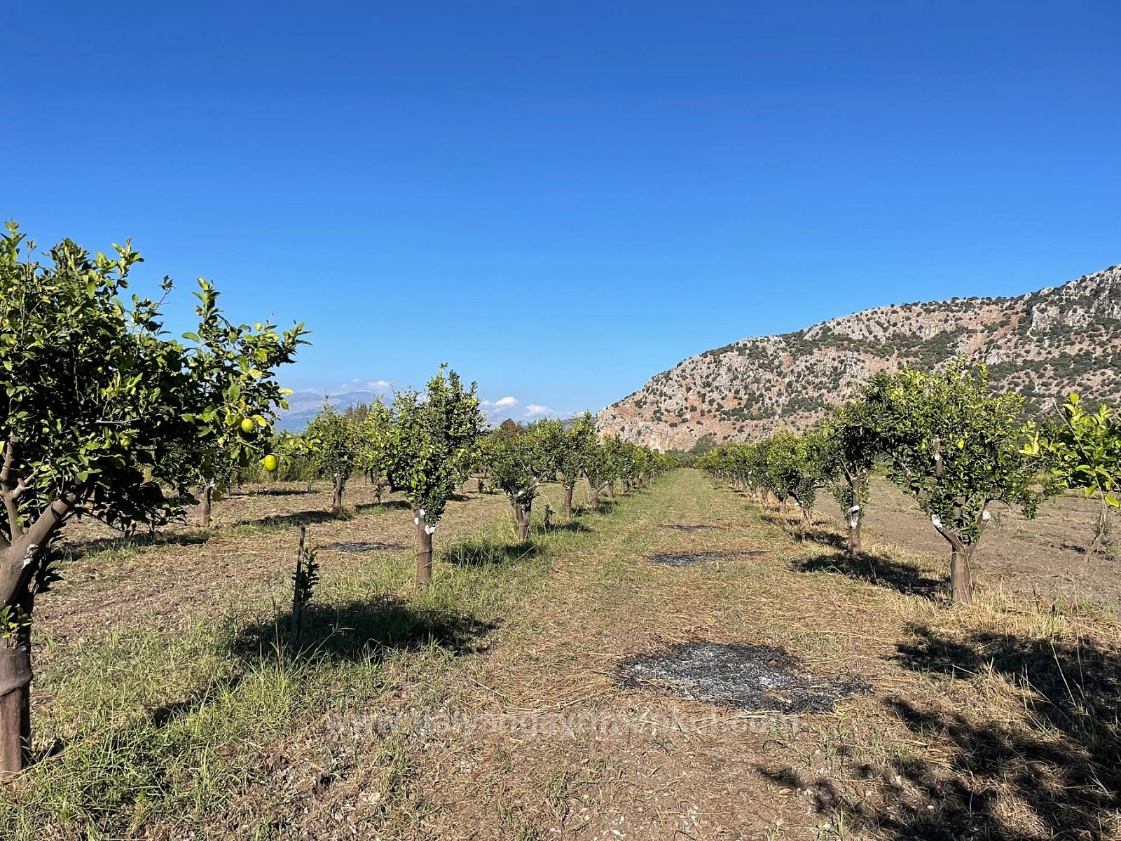 Dalyan'da merkeze yakın dağ manzaralı full dolu limon bahçesi 6,600m2 satılık tarla yol su elektrik telefon sorunu yoktur etrafında yerli ve yabancı yatırımcılar vardır araziye ait elektrik abonesi bağlıdır arazın 1/1000 lik imar planına çok yakındır ileride ilk plana alıncak olan bölgedir. ileriye dönük yatırım için tavsiye ederim mesafe olarak alış veriş ve sent pazarına marketlerine 5 dk iztuzu plajına 10 km havaalanına 20 km mesafesi olan tarlanın fiyatı:18,500,000tl